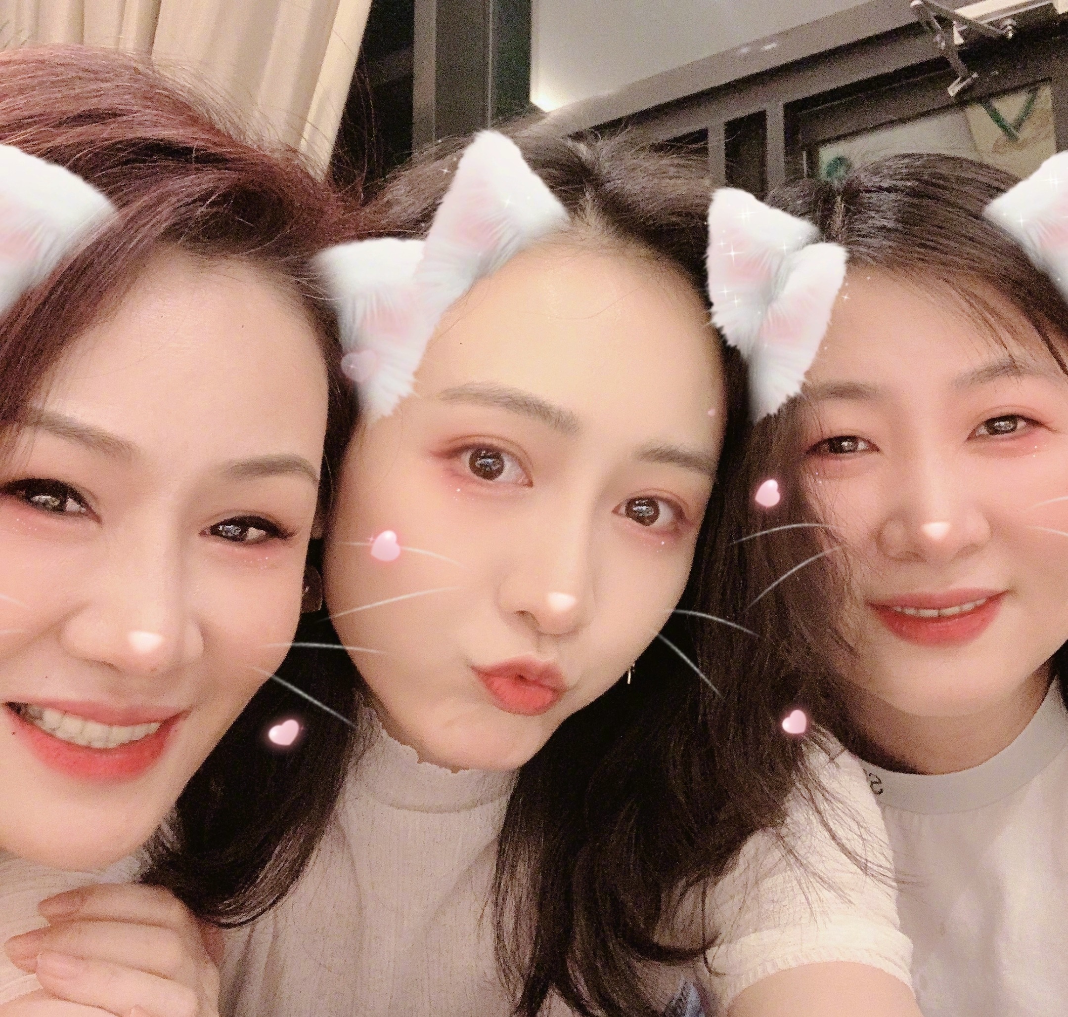 王鸥和众美女们合影,对镜嘟嘴比耶,氛围温馨融洽。