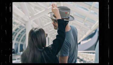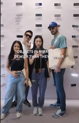 只见照片中的Bella身穿一件黑色T恤,搭配一条休闲裤和运动鞋,散发着满满的青春活力,一边的高以翔则戴着帽子和墨镜,“酷”范十足,妥妥一副阳光大男孩的模样。高高暖心地帮女友背着包,很是甜蜜。四人对镜自拍,高以翔195的身高很占优势,气氛十分融洽。