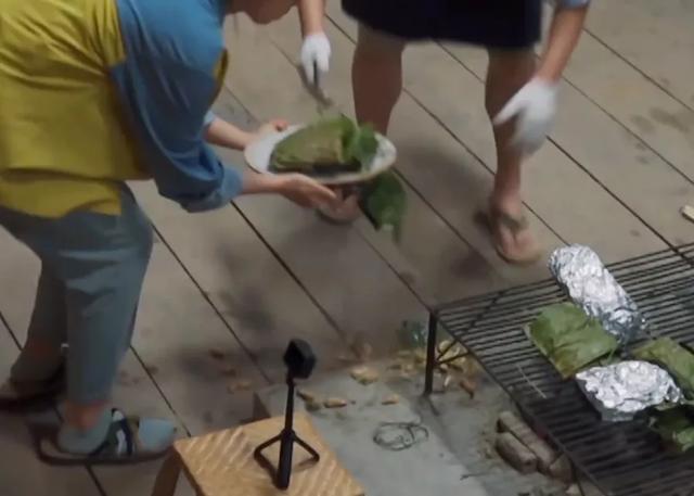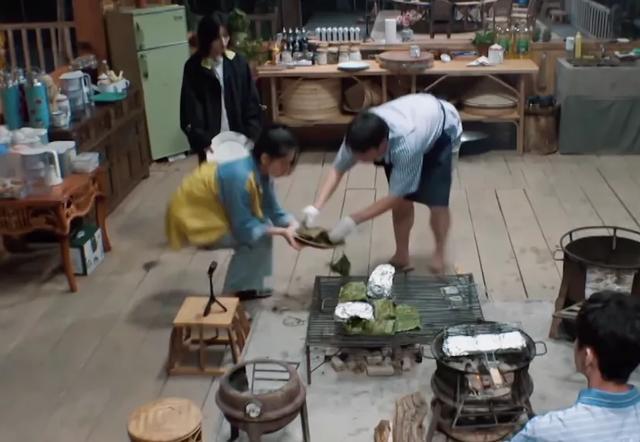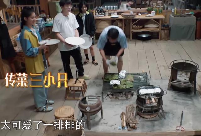 饭前三个小辈端好盘子预备传菜,黄磊提前嘱咐了一句,“过来点,盘子都过来点”,张婧仪也听话蹲到他身边,没想到还是出了错,包裹的荷叶散开里面的菜掉了一地。
