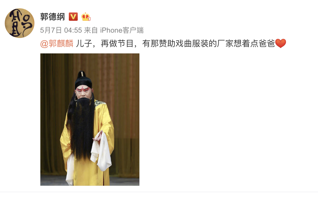 这么好的福利他的爸爸郭德纲都忍不住“眼红”,喊话儿子:“下次拉赞助想着点爸爸”。