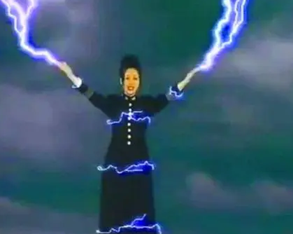 而唱着唱着就要张开双臂的,完全不顾麦克风还拿在手里的坏习惯,则可能是来自于在MV中化身“电母”的那英。