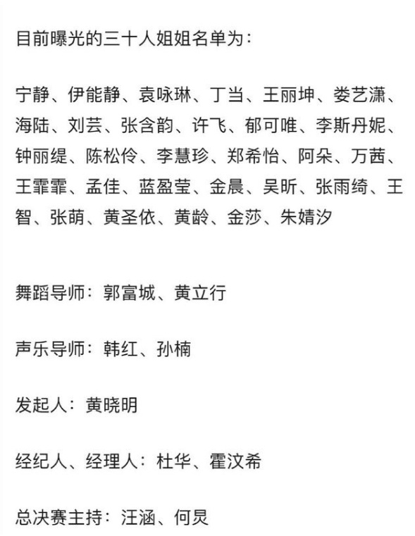 据悉,《乘风破浪的姐姐》是即将推出的一档女团成长综艺节目,由 黄晓明担任女团发起人。该节目召集了30位1990年之前出生的女艺人,通过合宿生活与舞台竞演,最终将选出5位成员“破龄成团”。