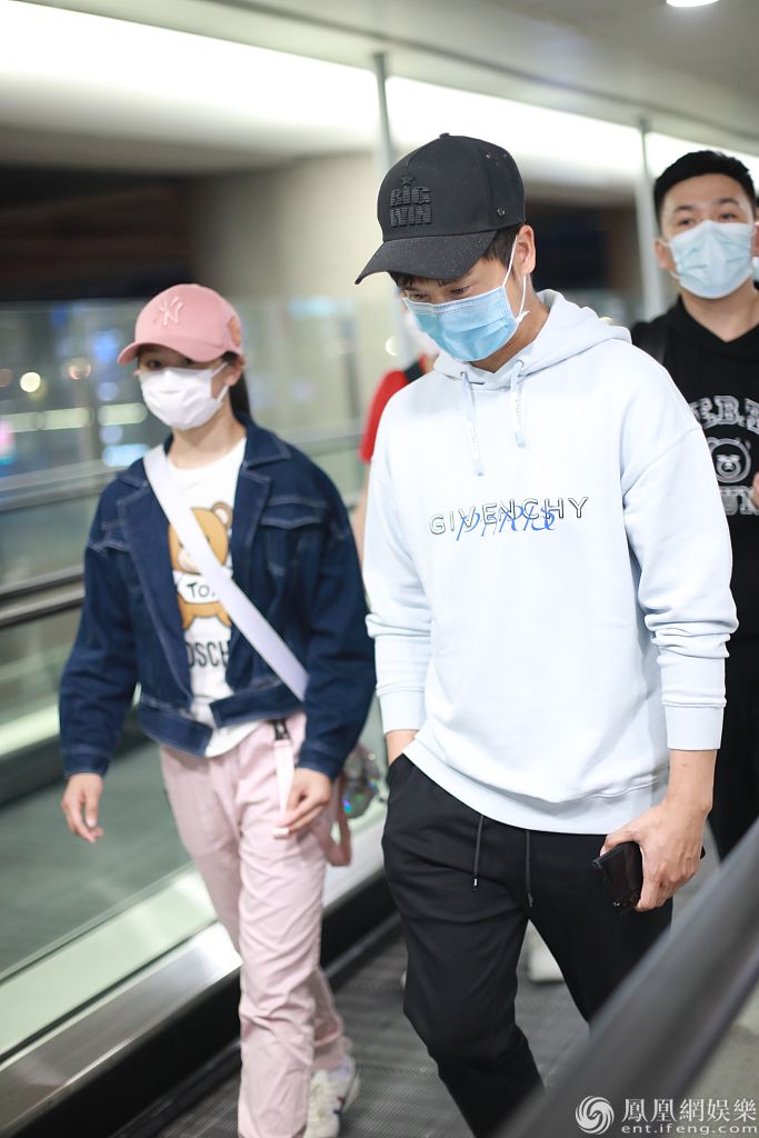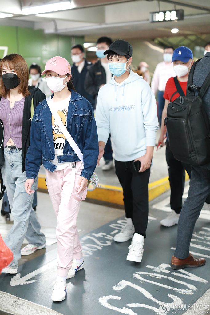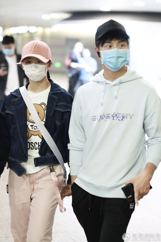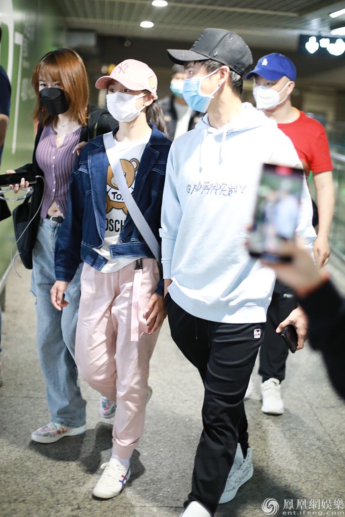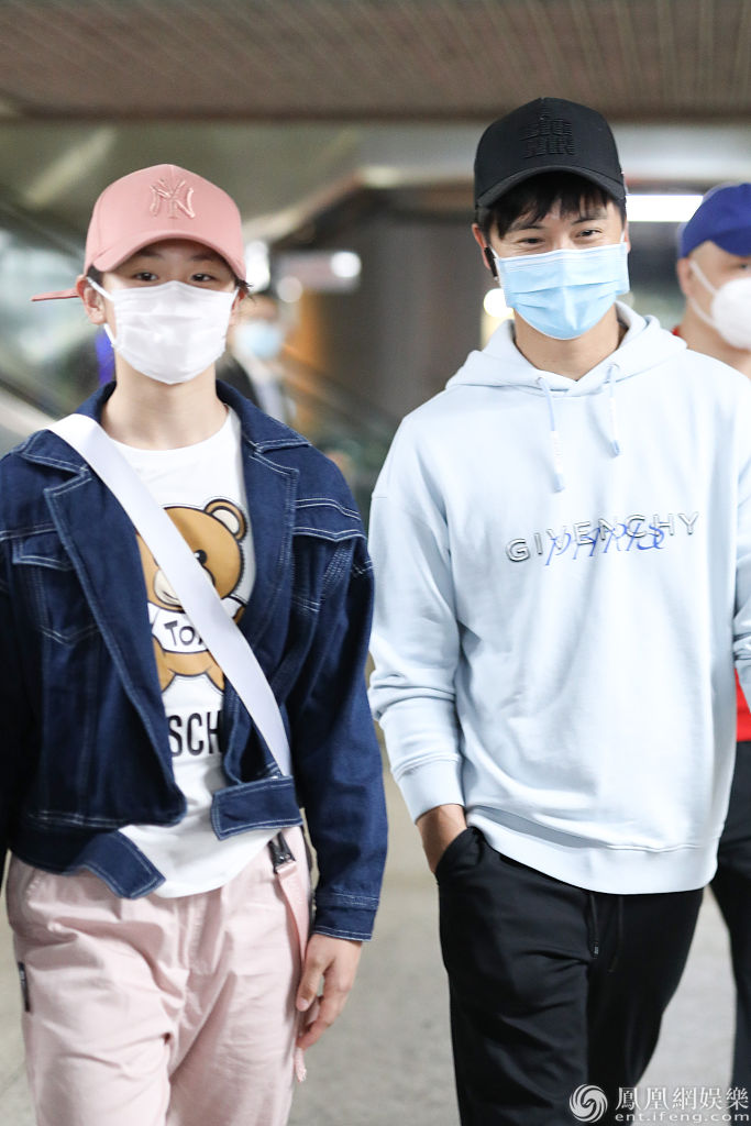 2020年5月8日,上海,田亮与女儿田雨橙现身机场。田亮戴着黑色棒球帽身穿黑白配运动装,看起来十分帅气;“森碟”戴着粉色帽子身穿粉色长裤,身材比例超