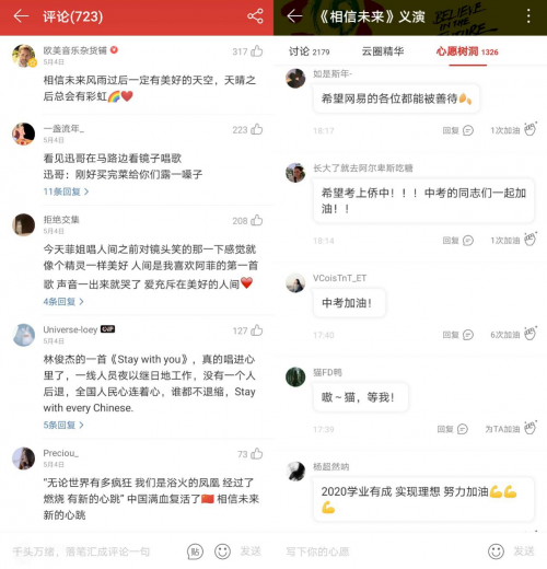 前两期精彩的演出仍然让人回味,许多网友在网易云音乐义演视频回放区评论,“相信未来,凝聚信念,聆听未来的声音,紧握力量,让心更坚定。”