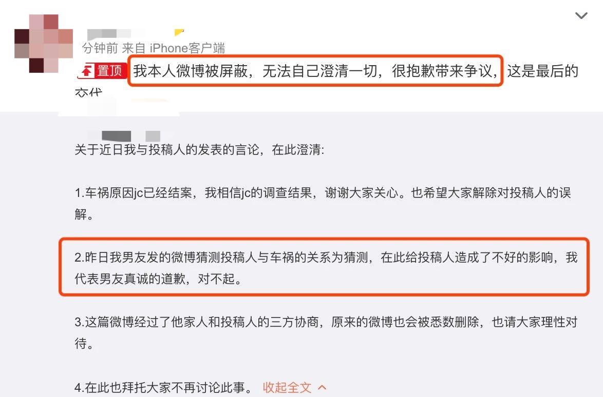 昨天下午四点半刚过,爆料者再次发长文,一一回应了自己在车祸事件中的争议。