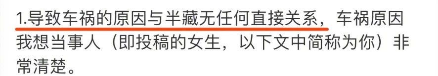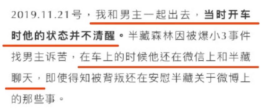 其实在女网友放出来的爆料合集里,刚好有提到这一点。她表示,在车祸发生之前,F的状态很不好。因为那时半藏被曝插足别人感情,网上全都是声讨她的言论。所以F就不无担心地和她聊天,试图安慰她。