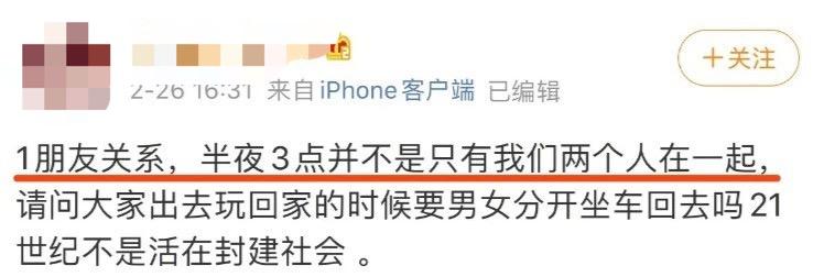 比如她和F的关系,只是正常朋友,不是外界揣测的一夜情对象。