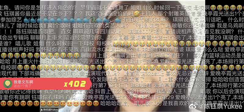 前不久,陈钰琪去虎扑做直播,嚯那阵仗可真是锣鼓喧天鞭炮齐鸣,弹幕多到已经变成了马赛克,虎扑jr都在哀求让我看一看plmm高清的脸吧。有幸和陈钰琪连麦的直男,犹如上春晚一般雀跃,不停呼唤老母亲“来看儿媳妇啦”,还说要是能娶到陈钰琪这样的女孩子,简直是祖坟冒青烟了。