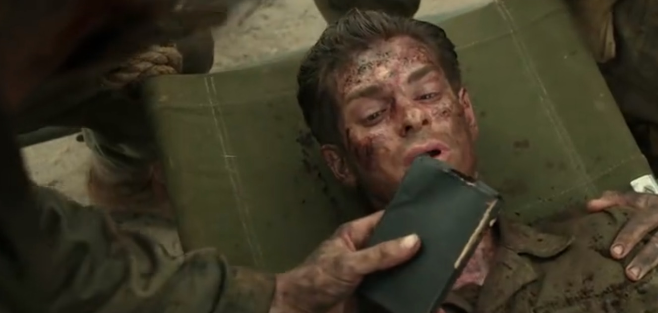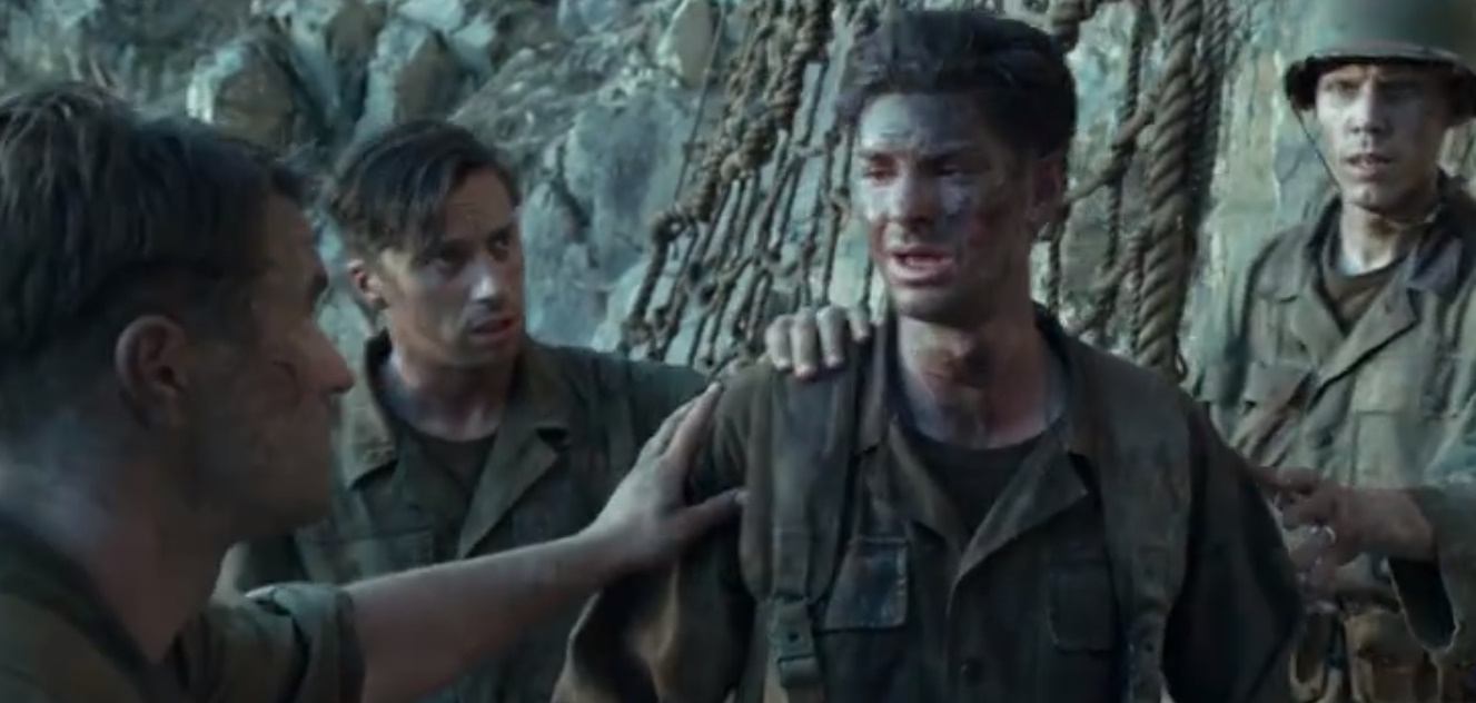 戴斯蒙德为了救旁边的战友,用脚把炸弹踢飞,而炸弹刚好在他的脚边爆炸,戴斯蒙德也成为了一个伤兵,他被阵地后方的战友目送着送出了战场。
