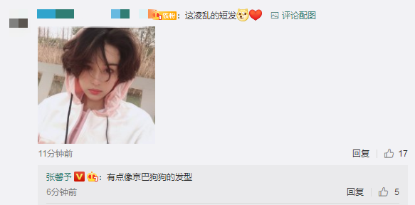到了外面张馨予也是放飞自我,任由已经长长的头发在风中凌乱,张馨予还在评论区跟粉丝互动自己没有地方剪头发,看来明星们宅在家跟我们都面临同样的问题。这头凌乱的短发张馨予还自我调侃:“有点像京巴狗狗的发型。”