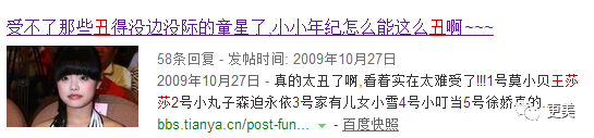 当时网友总抓住她颜值不高来说事儿,甚至嘴下不留情地投她是“最丑童星”。