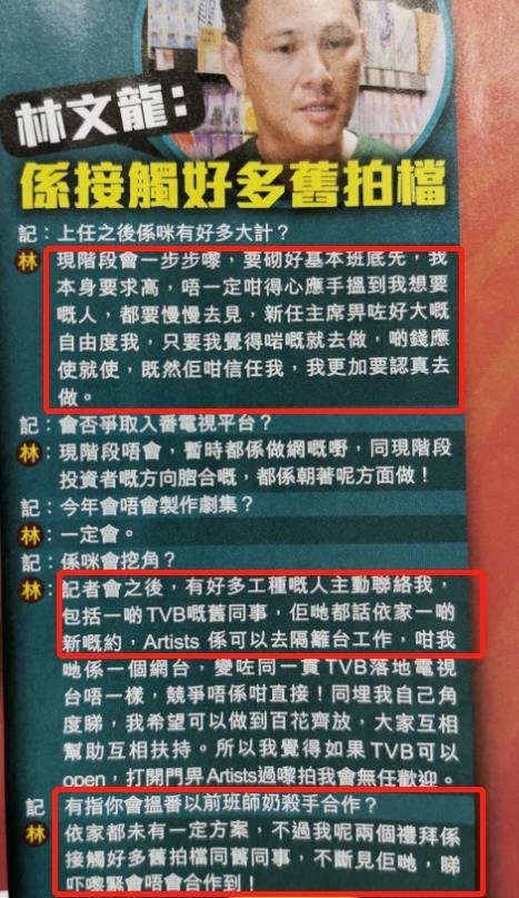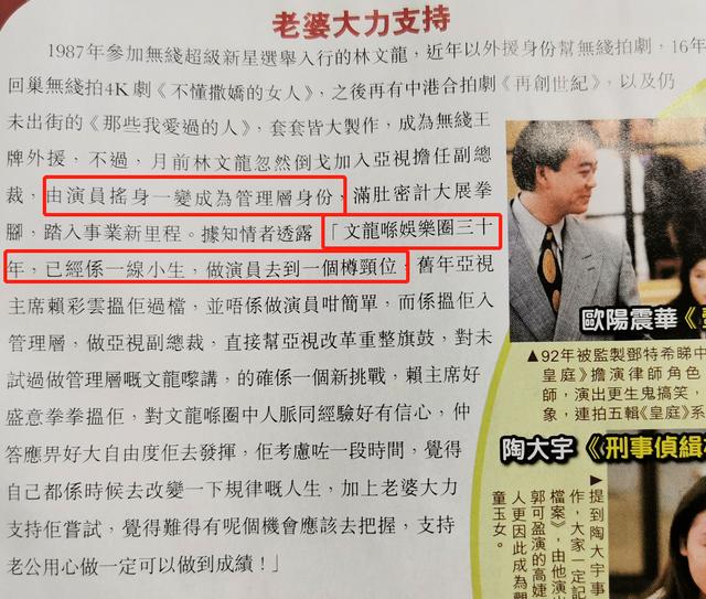 近年来,林文龙一直以外援身份帮无线拍戏,从《不懂撒娇的女人》到《再创世纪》以及还未上线的《那些我爱过的人》每部都是大制作,而林文龙也一路被称作无线王牌外援。但直到最近林文龙才从演员转行升级亚视管理层,忽然倒戈加入亚视副总裁,开启事业新旅程,让不少观众都始料未及。
