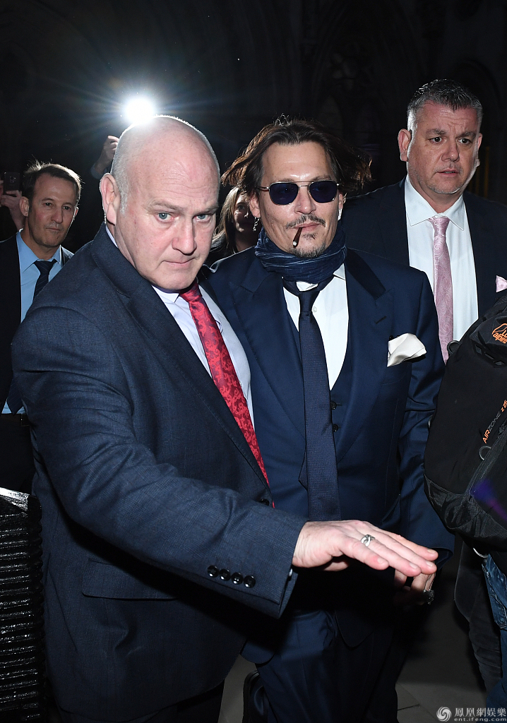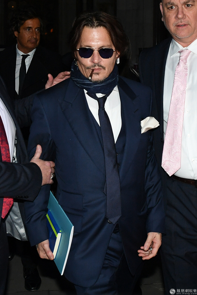 当地时间2020年2月26日,约翰尼·德普离开法庭,他西装革履黑超遮面,嘴边还叼着烟,看起来状态轻松