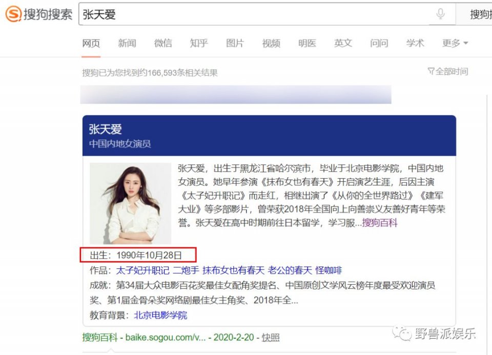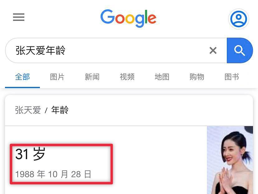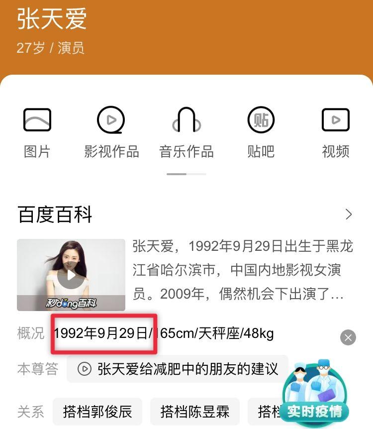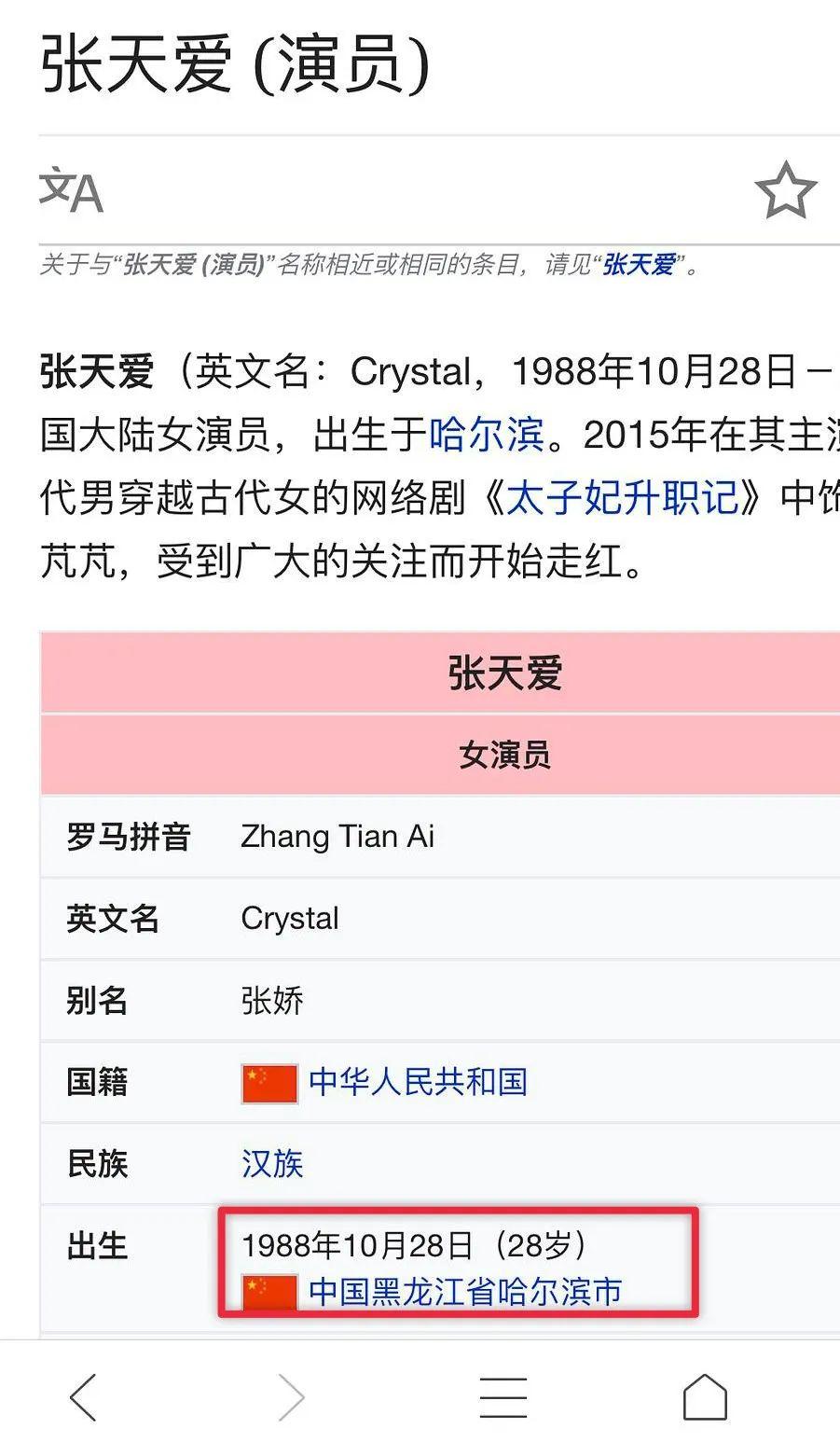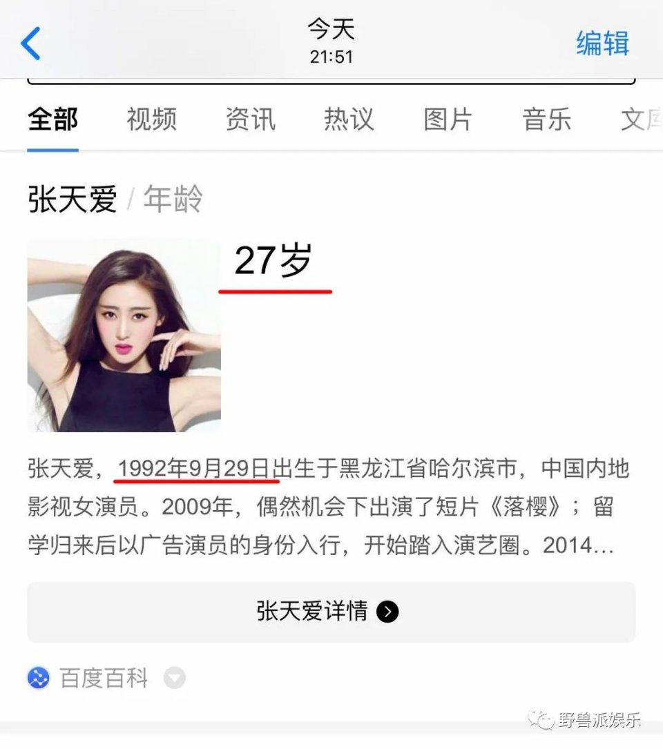 其实在几个搜索引擎上搜张天爱,年龄都是不同的。