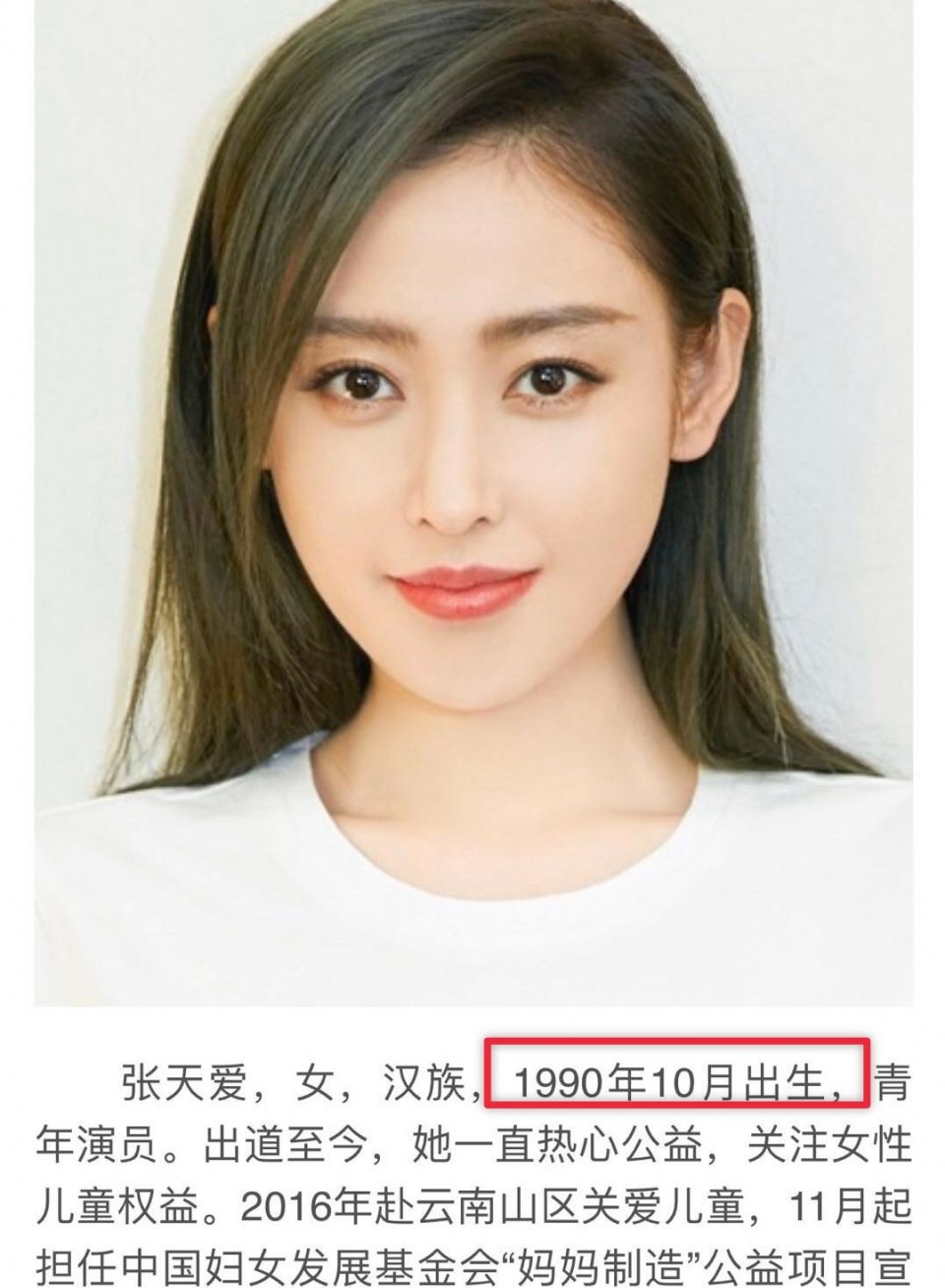 其中资料显示张天爱生于1990年10月,按理说这一次信息总该不会出错了吧。