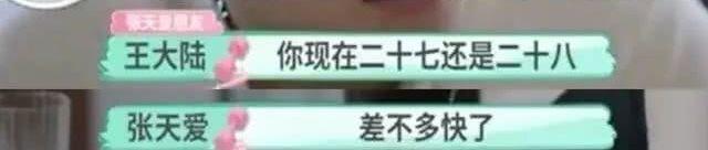 可王大陆还继续提问她,“现在是27还是28”?张天爱则答案非问,含糊其辞地搪塞道“差不多快了”。
