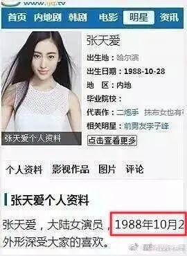 同时还有另一个网页显示,张天爱的出生年月也是1988年。
