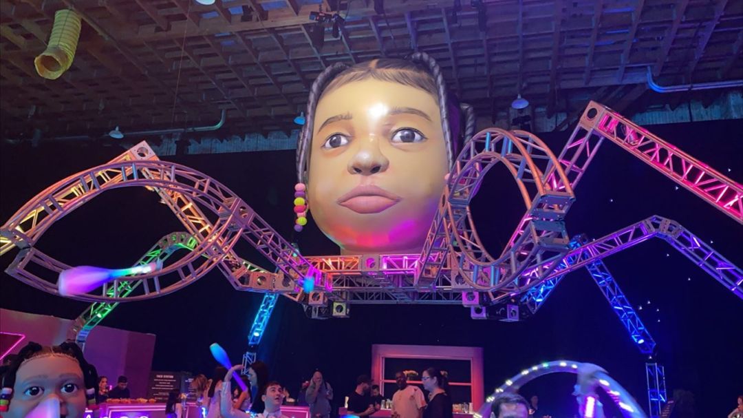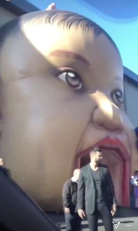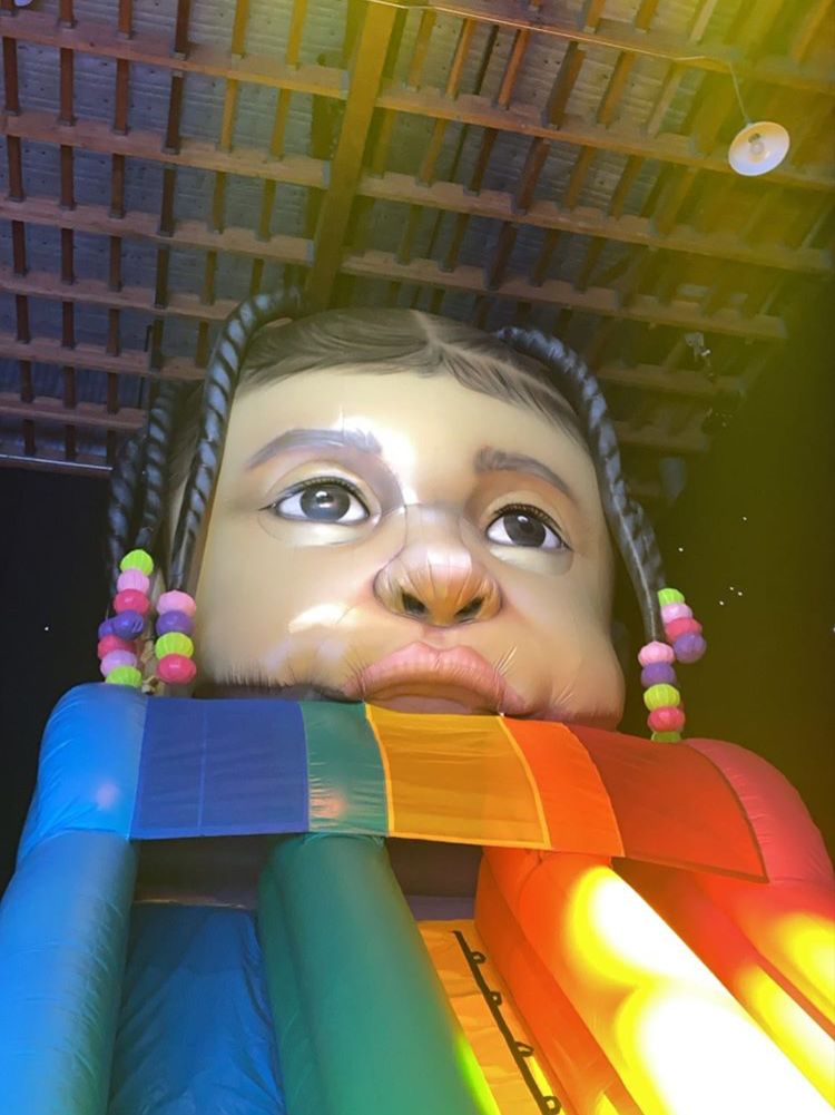 大门入口是照着Stormi做的巨大充气娃娃(有点吓人)。