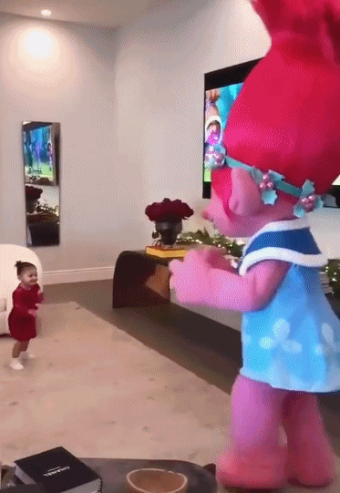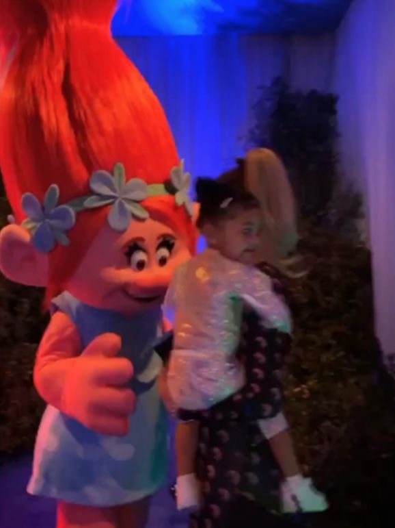 去年圣诞节,她爸爸请了她最喜欢的魔发精灵的主角Poppy上门来跟她玩。