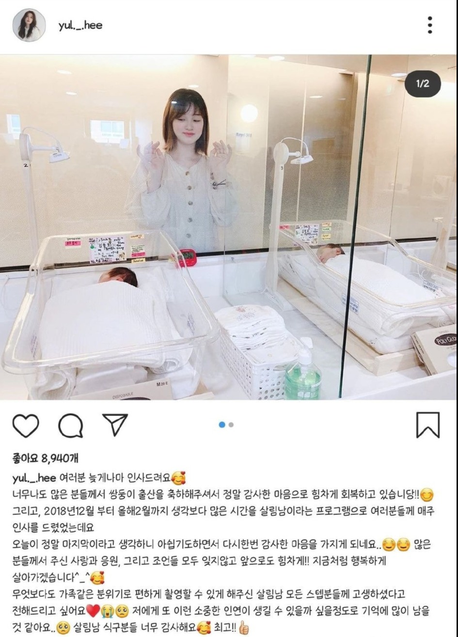 2月26日,韩国女星金律喜在社交网站上晒出了双胞胎女儿出生时的照