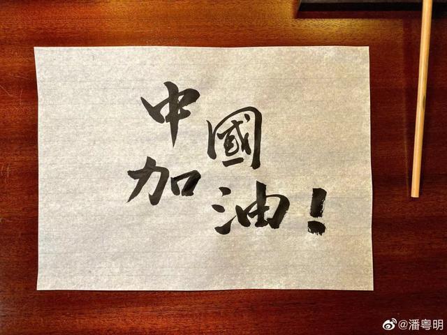 一幅是为抗疫前线加油的手写字。