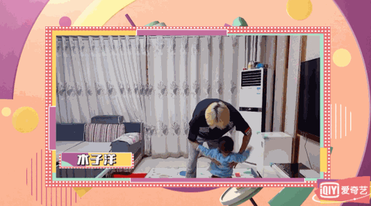 比如木子洋在家带娃举重。