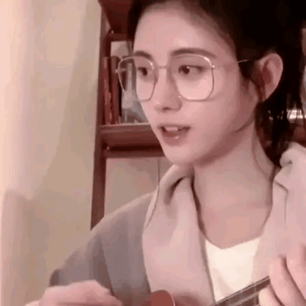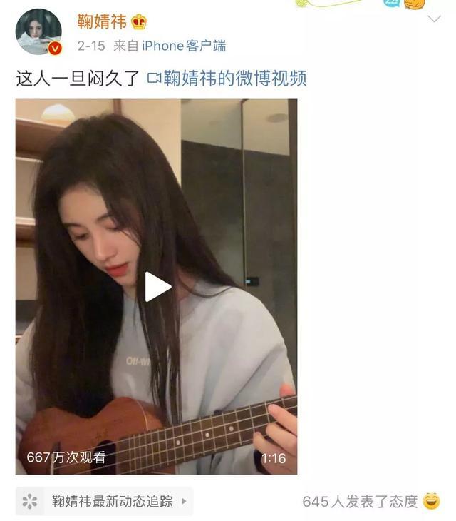 鞠婧祎在家练起了尤克里里。