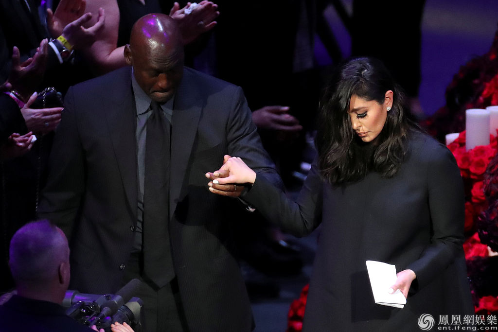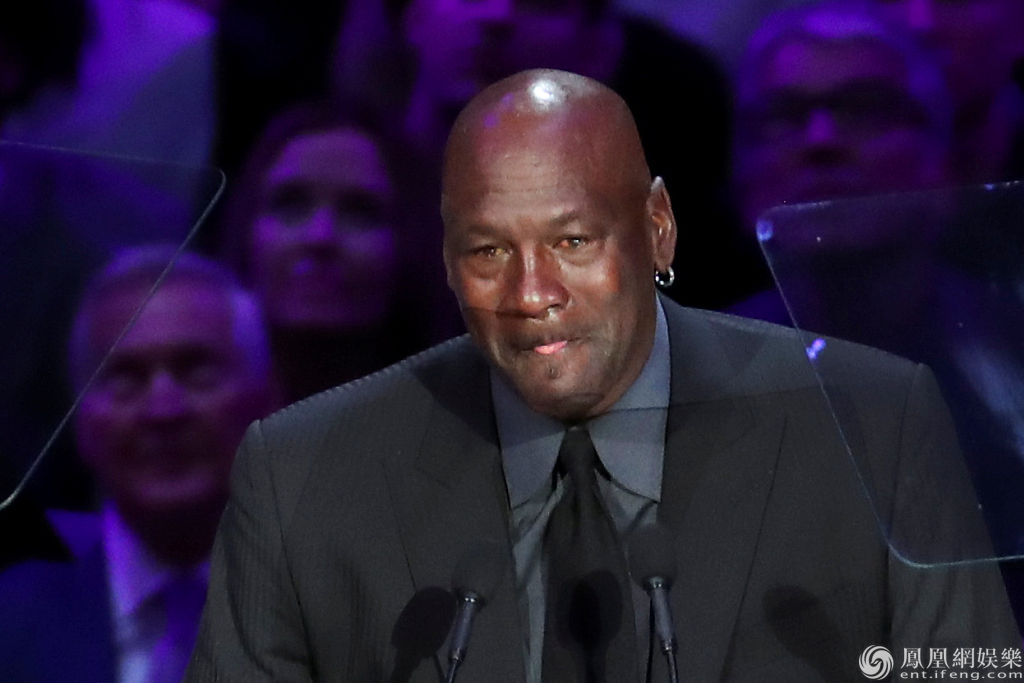 2020年2月24日,美国洛杉矶,科比与GIGI追思活动举行。“飞人”乔丹(Michael Jordan)穿黑色西装现身,登台演讲情难自已潸然泪下,他表示:“科比就像我的小兄弟,我的一部分也随他走了