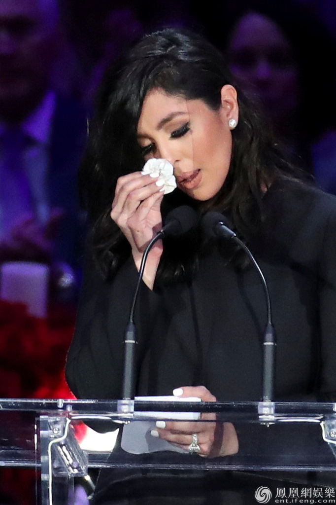 科比遗孀瓦妮莎(Vanessa Laine Bryant)身穿黑裙上台缅怀丈夫和女儿,她多次流泪哽咽:“希望你们在天堂快乐,直到我们相见,我会永远爱你们,想念你们”。