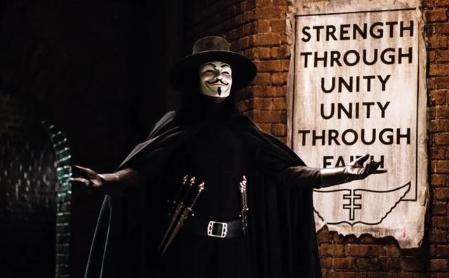 这晚,年轻女子艾薇(娜塔丽·波特曼饰)身陷险境,幸得V(雨果·维文饰)相助。V是一个永远带着面具的神秘男子,拥有高智商和超凡战斗力。V继承了前革命英雄的使命,为了推翻荒唐极权的统治阶层,他成立了神秘的地下组织,摧毁了伦敦的标志性建筑,点燃了反政府的熊熊烈火。