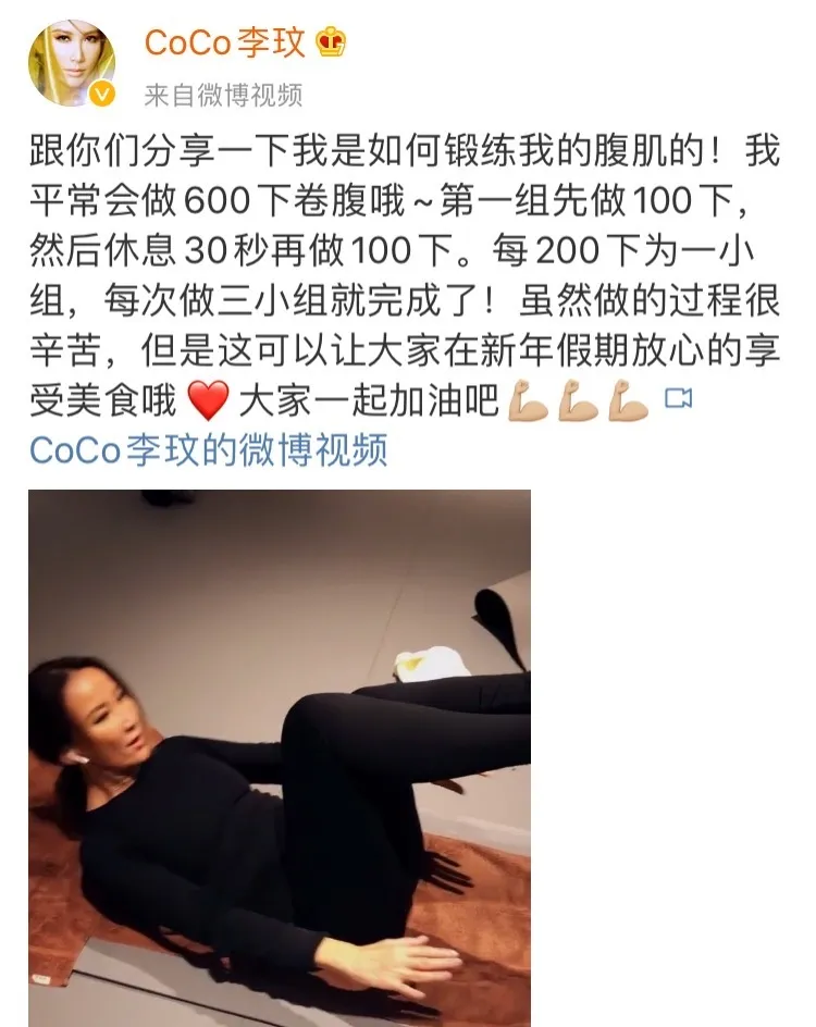 在大家的眼中,过了40岁的女人是什么样的呢? 大部分人在生活和工作的双重压力下,已经步入发福阶段,所谓的窈窕身材早已成为过去,超标的体重和走形的身材随处可见,体重控制早已成为了一个遥远的词汇。 可有些人,哪怕年龄上已经不再年轻,却依然不影响其拥有令人惊羡的身材,前凸后翘的玲珑曲线在诉说着对岁月的蔑视! 比如,已经45岁的李玟,简直是娱乐圈冻龄的存在! 说到李玟,想必大家肯定不陌生。 李玟应该是娱乐圈里面出了名的“不老女神”了! 45岁的她还经常活跃在娱乐圈当中,而且还经常登台唱歌跳舞的,可以说是十分有“活力”了。 她不仅是当代华语乐坛极具代表性的亚洲流行天后,影响力触及海内外及全亚洲地区,也是位具有国际声誉的华裔歌手,被《时代周刊》评为“华人之光”。 李玟代言的好迪洗发水广告——“大家好,才是真的好,广州好迪”已经成为了很多90后烂熟于心的广告语,令人印象深刻,成为了暴露年龄的存在。 然而这么多年过去了,这个女人似乎并没有什么变化! 之前朋友圈流行“十年对比挑战”时,她也晒了自己这10年来的变化,大家纷纷惊呼:这是冻龄了吧,感觉没啥变化~ 李玟凭身材绝对是“性感尤物”,她火辣辣的身材再加上自身独特大胆的穿衣风格足以吸引所有人的目光。 前段时间,网上流传很火的几张李玟的照片,这是45岁李玟在网上PO出一组身材照,瞬间就引起一片赞叹之声。 她身穿比基尼,展露出性感紧致的身材,四肢纤细、大长腿吸晴,腹部平坦,腰身也毫无赘肉。 这真的是一个45岁女人拥有的身材么? 说这是25岁的辣妹身材都有人信吧,真是让人羡慕嫉妒惹~ 近期,李玟在参加一档节目时穿了一件白色连衣包臀裙,很好的凹凸出李玟的性感身材。这件衣服依旧是张扬而又大胆的风格。 她凹凸有致的身材把网友们都看傻眼了! 其实,李玟不高挑,160cm左右的身高却一直都被大家称为“性感女神”。 其实很大程度就是因为她曼妙的身姿,而且,感觉这么多年来一直都没变过! 舞台上的李纹:电臀舞女王 李玟在娱乐圈一直都是独树一帜,造型也都大胆前卫,每一次都给人带来新鲜感,每次都能给观众们带来非凡的体验。 在舞台上她一直是那个性感热辣的女王,她自信无比,每一次表演都让人心潮澎湃,火辣身材更是让直男们挪不开眼! 当年的一曲“电臀舞”,到现在都让人难以忘怀! 2016年,41的李玟参加《我是歌手》的时候,在舞台上重现了经典的“电臀舞”,浑身上下都散发着自信的魅力,十足的女王气场! 在大家惊叹李玟舞蹈的同时,很多人都不知道,原来李玟小时候,左大腿与盆骨关节脱臼做过手术,而且,术后留下了后遗症。 从此,她的左腿病患处变得有点不平衡,累了就会摇晃甚至伴随阵痛,所以每次跳舞就像踩在刀尖上一样,连医生也惊讶她竟然可以跳舞。 世上哪有那么多幸运,不过是比我们优秀的人比我们还努力! 舞台上看似轻松的舞蹈动作,台下都需要十倍的努力。这是多大的付出,才让她赢得了“电臀舞女王”这个称号啊! 健身中的李纹:运动达人 舞台上光彩照人活力四射,背地里她全力以赴挥洒汗水。 45岁的李玟,一直保持良好的健身习惯:因为她坚信,运动能使她更健康,更自信,更有活力。 从有氧到器械,从跑步到搏击,再到频繁而高强度的舞蹈训练,她从不偷懒。 登山机,是她每天都在坚持做的器械,这样能让她保持适当的体脂,塑造更好看的线条,也能提升心肺功能! 李玟也在网上说过,她训练腰部的方法是仰卧起坐,每组200个,一天做三组,成效很快看得见! 引得网友纷纷惊叹留言:200个......我可以做一年吧! 而且,健身讲究三分练七分吃,健身达人李玟也是相当注重饮食。 李玟特别看重早餐,她觉得早餐是必不可少的,而且一定要吃得好和健康。 它会提供很多能量,帮助我们开启一整套的好状态!如果吃的不规律,身体的基础代谢很可能被破坏掉,得不偿失! 而且,她很少吃高热量食物,几乎不喝碳酸饮料,日常就是白水和绿茶。 早前李玟就把香蕉减肥法的秘籍送上过热搜,但其实完整版的菜单是这样的,并不是单纯的香蕉而已,能提供一天的能量,帮助身体减负↓ “ 早餐:去蛋黄水煮蛋*2、香蕉*1 午餐:鸡肉沙拉,也可视个人喜好加入豆腐、藻类 晚餐:蒸豆腐*1、炒小白菜*1、汤*1 李玟这前凸后翘的身材,可不是每天暴饮暴食,狂刷手机得来的,靠的是几十年如一日的身材管理。 生活中的李玟:热爱生活 对李玟而言,20年如一日的,不只是身材,还有对生活的无限热爱,以及乐观坚强的心态。 李玟身材火辣,穿着大胆,但她却洁身自好,从未传过不干不净的绯闻。 她嫁给大她十几岁的老公后,两人相爱和睦,更令人惊讶的是她和继女们的关系。 大家经常一起拍摄合照,她身旁的两位女儿与自己形同姐妹,一起微笑的看向了镜头,这样的一幕是很有爱了,而且她们之间似乎也没有什么太大的区别,她依旧很年轻。 日常生活中,李玟有一双发现美好的眼睛。 她会注意到路边闪烁的灯光,会为路边的鲜花而雀跃...... 如果你去翻看她的微博,你会发现出现频率最高的一句话就是:今天太开心了,今天超级开心…… 李玟曾经在一档节目中说过: “生活态度很重要,有好的态度能吸引身边的人接近你。人缘好,做每件事都会顺利点。女人总是不满意自己的轮廓和样貌,永远追求尽善尽美。每个人都有自己的性格和特色,即使不完美也要保持个性的自己