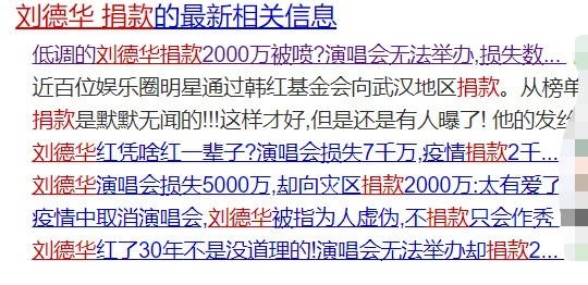 但事实上,这些所谓的报道全部都没有证据证明刘德华捐款。