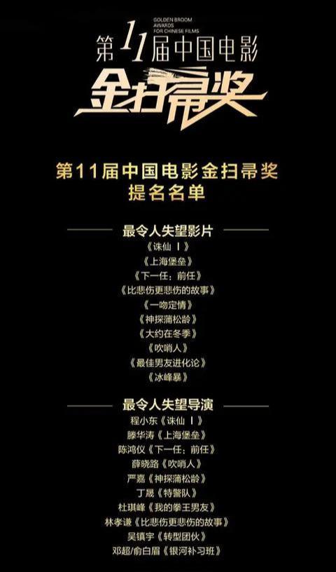 近日《青年电影手册》发起的第11届金扫帚奖最终提名名单出