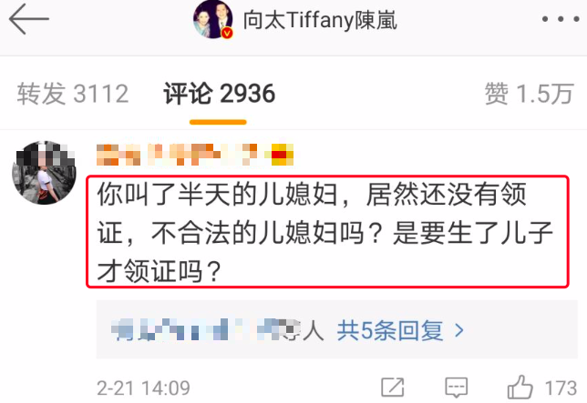 对此,不仅向佐被骂惨,连带着他的妈妈向太陈岚也一并被骂惨。不少网友针对这件事都挺替郭碧婷抱不平的,质疑她是不是要等郭碧婷生了儿子才能领证,骂她是空手套白狼,并给向佐贴上妈宝男的标签。