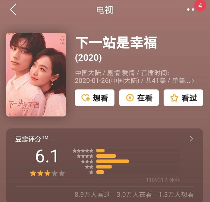 应该知道,《下一站是幸福》的评分在播出之初就破了8分,但随着后期剧情拖人设崩塌后,评分一路下滑,现在只有6.1分,但与阵容强大的《完美关系》相比,这是一场胜利。
