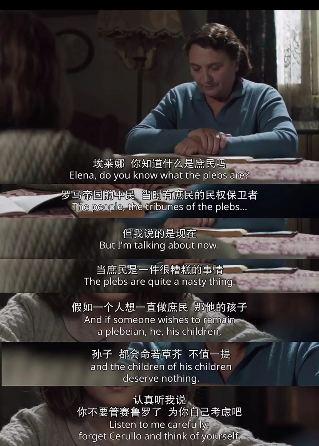在埃莱娜看来,莉拉是在反抗传统的压迫,反抗权势的威胁。
