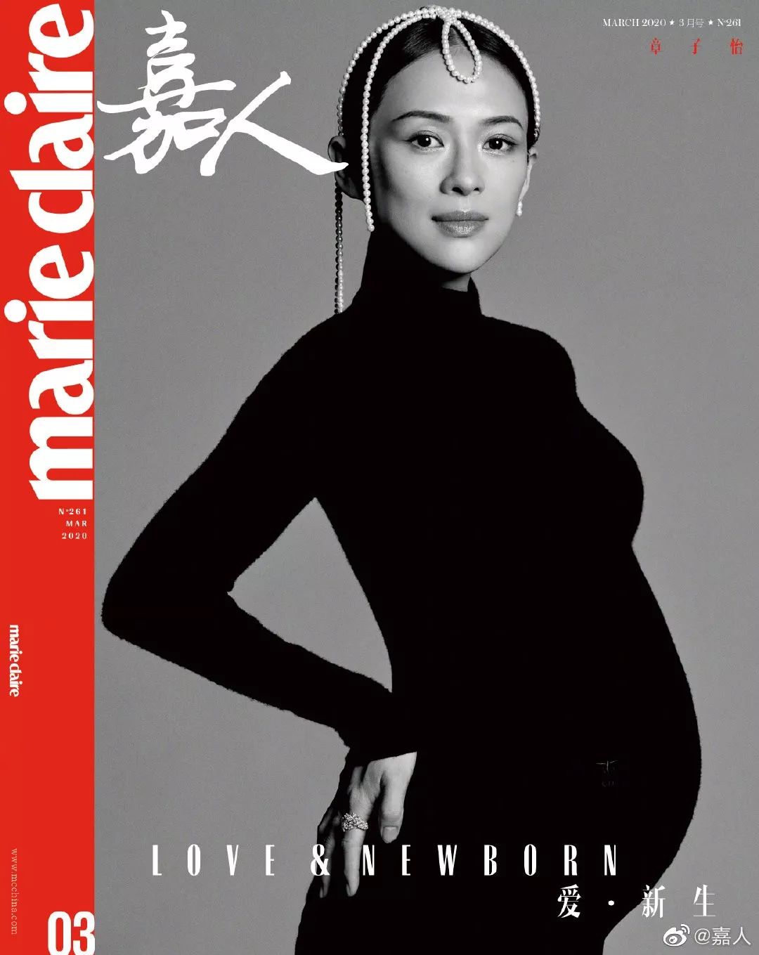 内地版《嘉人》杂志三月刊的封面出街了,这次登封的是孕期的章子