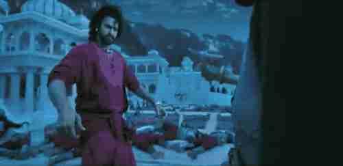 更有超强待机,主角光环附身的男主巴霍巴利,被戏称为“开挂王”,一人杀万敌都算小事,各种反物理规则、地心引力的场景出现。骑象拉弓,徒手破石,四箭连发逼退万敌,身中数箭摔下万丈深渊还能背起壮硕大汉疯狂行走,徒手撕人无数……。