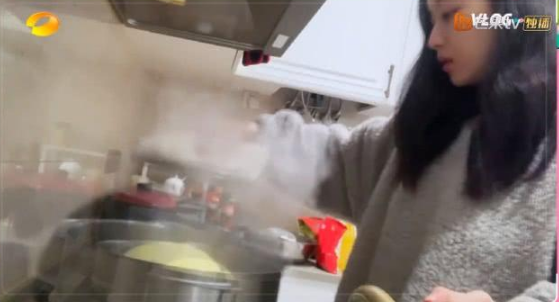 2月21日,最新一期的《嘿,你在干嘛呢》,倪妮分享了一段效仿何炅在家做蛋糕的视