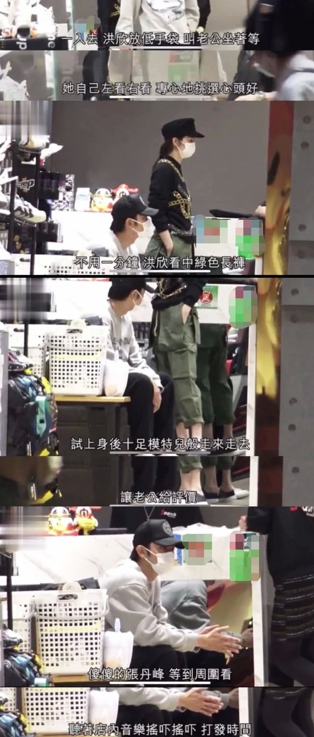 张丹峰等得百无聊赖,不时左顾右盼。后来,张丹峰也加入试衣,不过他试了裤子和球鞋都不太满意,最后洪欣为自己买下了两条裤。