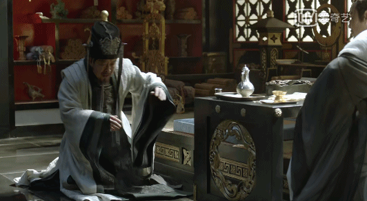本场戏,借庆帝执笔书写,有效地避免了皇帝听梅执礼说话时表情动作单一的问题。