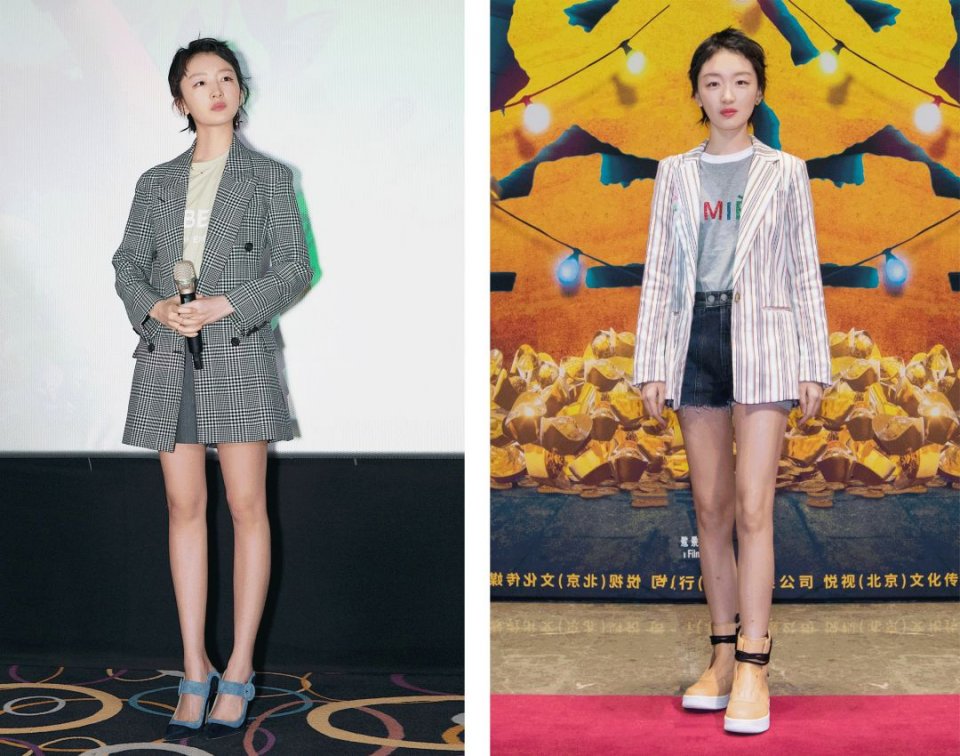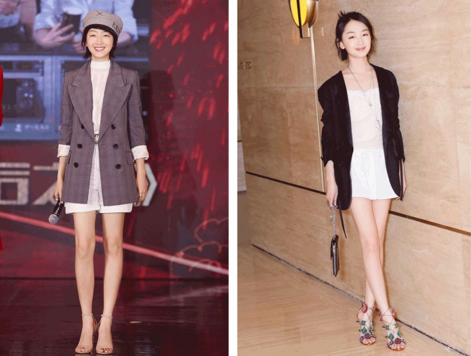 周冬雨呢,是矮个子女生的西装穿搭模版。她很懂自己的优缺点在哪,身高不高,但有双美腿。