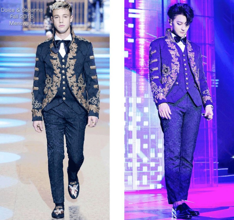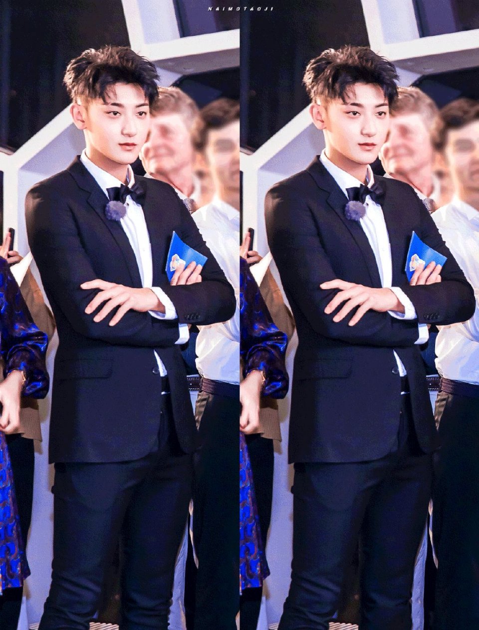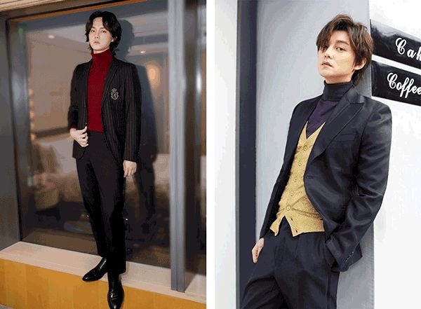 西装款式也在男明星里算多的,穿无领开襟西装是热血高校里的校霸,长西装有股子阴柔美。