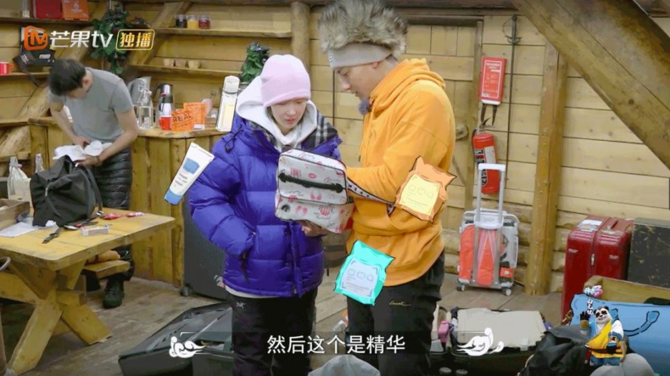 倒是韬韬掏出了一个化妆包,青瓜面膜,清洁面膜、24k金玫瑰花面膜、眼霜……男明星界的李佳琦。 ️