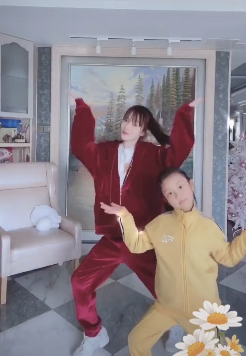 2月21日,李小璐在段视频平台上传了一条与甜馨一起跳舞的视