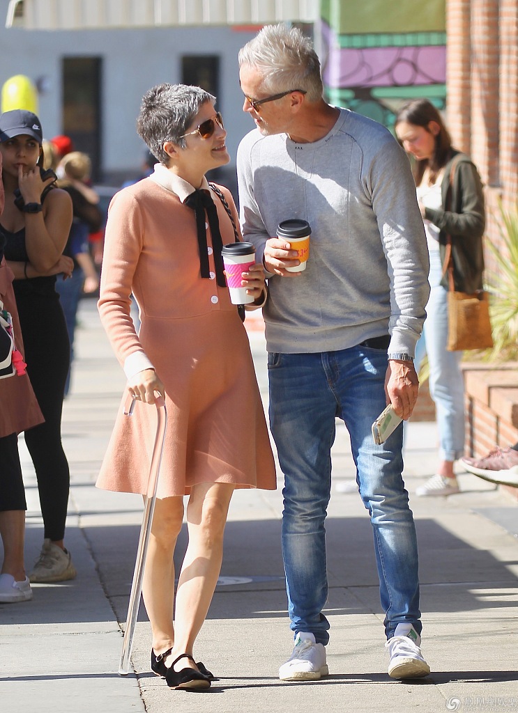 塞尔玛·布莱尔拄拐杖散步获男友护驾。