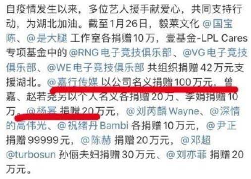 杨幂持股的嘉行传媒以公司名义捐款100万,为湖北加油;