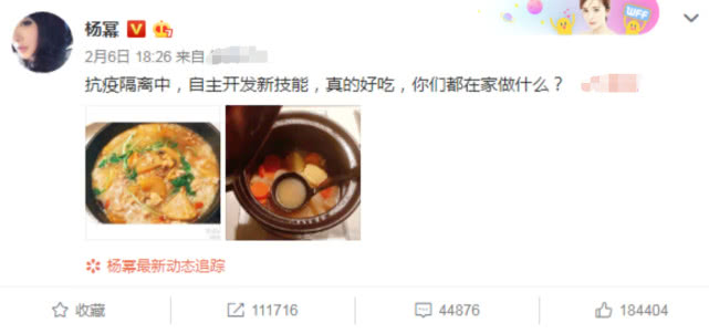 除了心系疫情之外,杨幂和闭门在家的网友一样,抗疫隔离,自主开发新技能做菜煲汤。