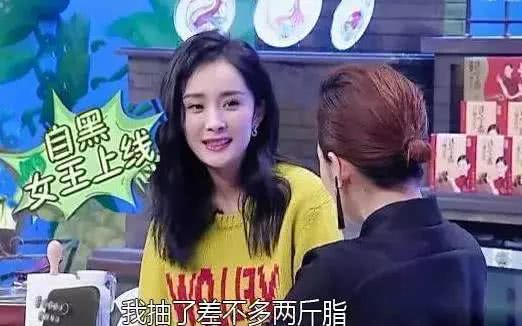 小S主持风格向来泼辣豪爽,直言不讳、敢说敢做。此前,杨幂穿着黑色短裤做客小S主持的一档综艺节目《姐姐好饿》,刚开始小s就问杨幂,为什么你的腿那么细? 杨幂回答,“其实就是开刀的结果而已,我抽脂了两斤!”
