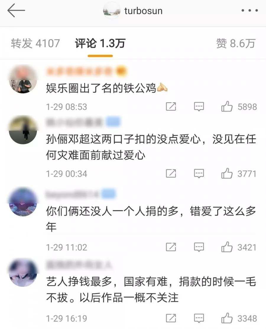 1月27日,有新闻报道邓超孙俪向疫区捐款30万。